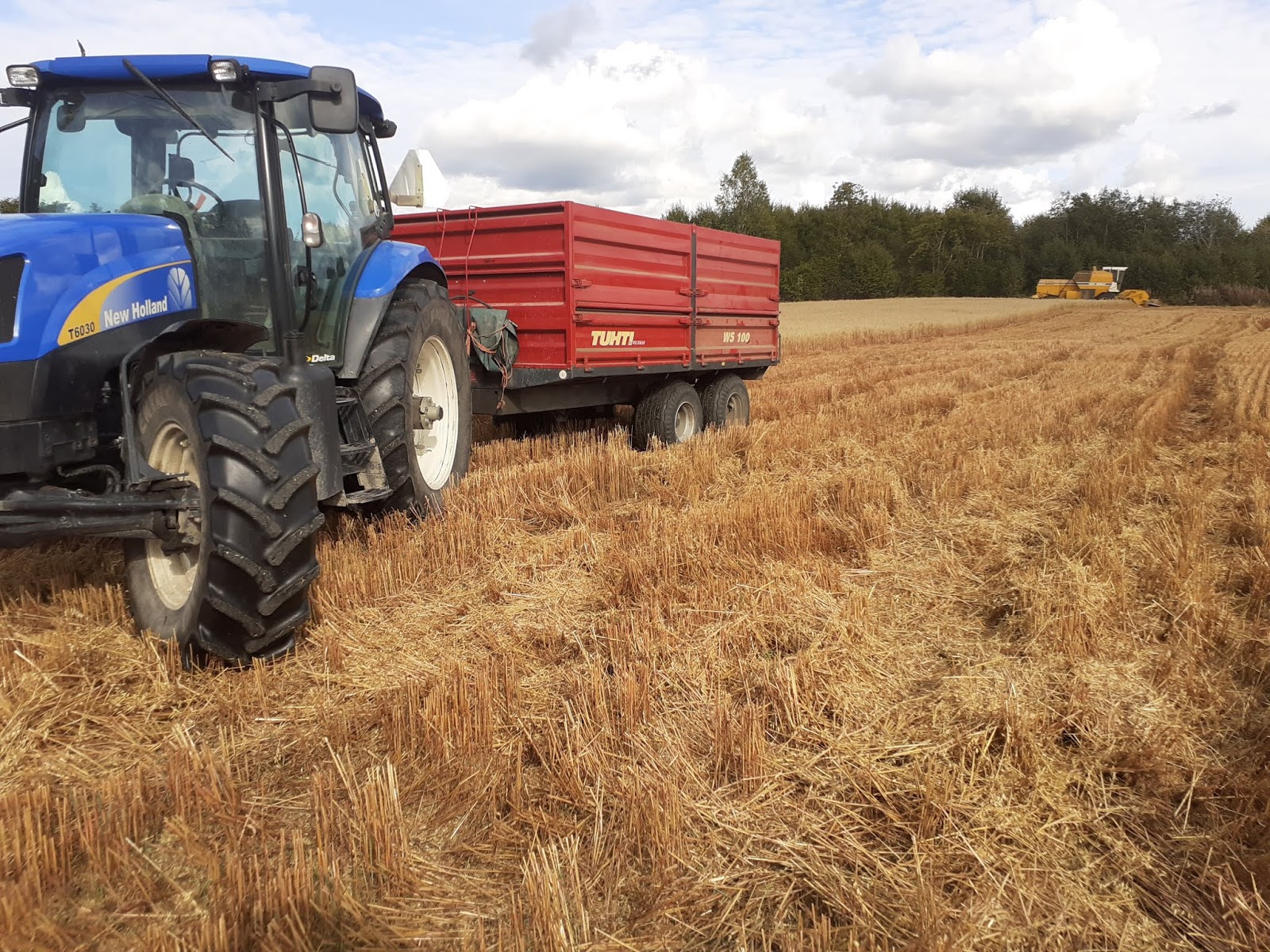 Aika monta lastia pitää viljaa puida, mikäli meinaa saada karjan kevääseen oman perusrehun turvin. Yksi kuorma on tässä.